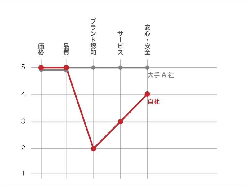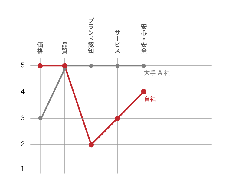 このように、自社の特徴を打ち出すことで、競合より優位に立てる可能性がでてきます。